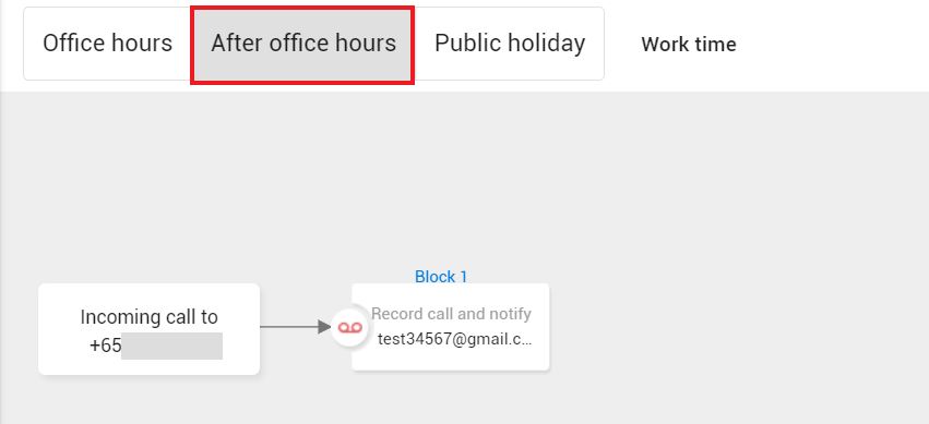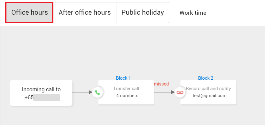 - If Press 1, transfer to Number 1 => Miss call => Voicemail