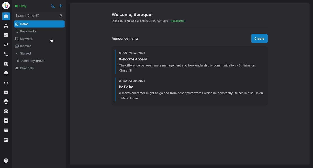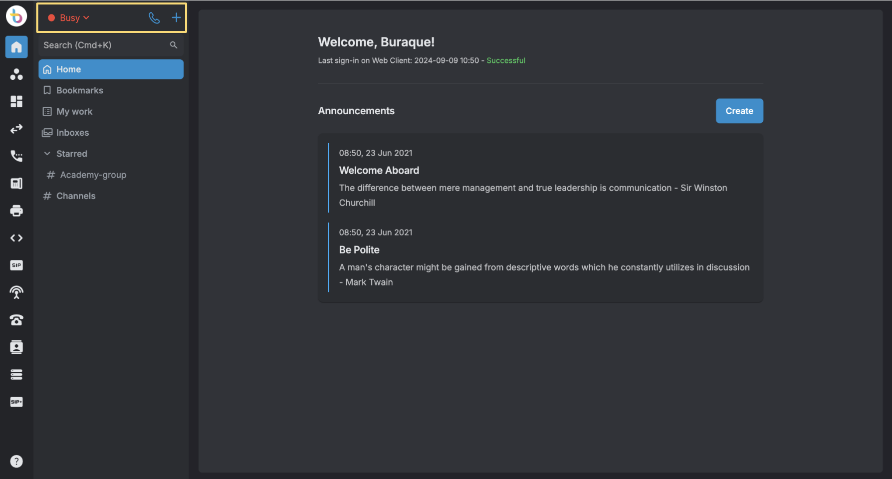 The agents' state is displayed on Unified Workspace to ensure that users are aware of their current status, which helps them manage their workflow more effectively and ensures they are always aware of their task load and availability.